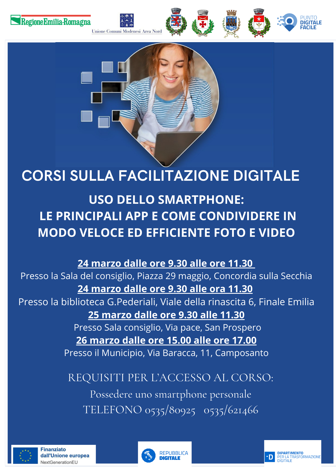 L'Unione Comuni Modenesi Area Nord, nell'ambito del programma Punto Digitale Facile finanziato dall'Unione Europea con i fondi NextGenerationEU, organizza una serie di incontri gratuiti dedicati a tutti i cittadini che vogliono sentirsi più a loro agio con la tecnologia.