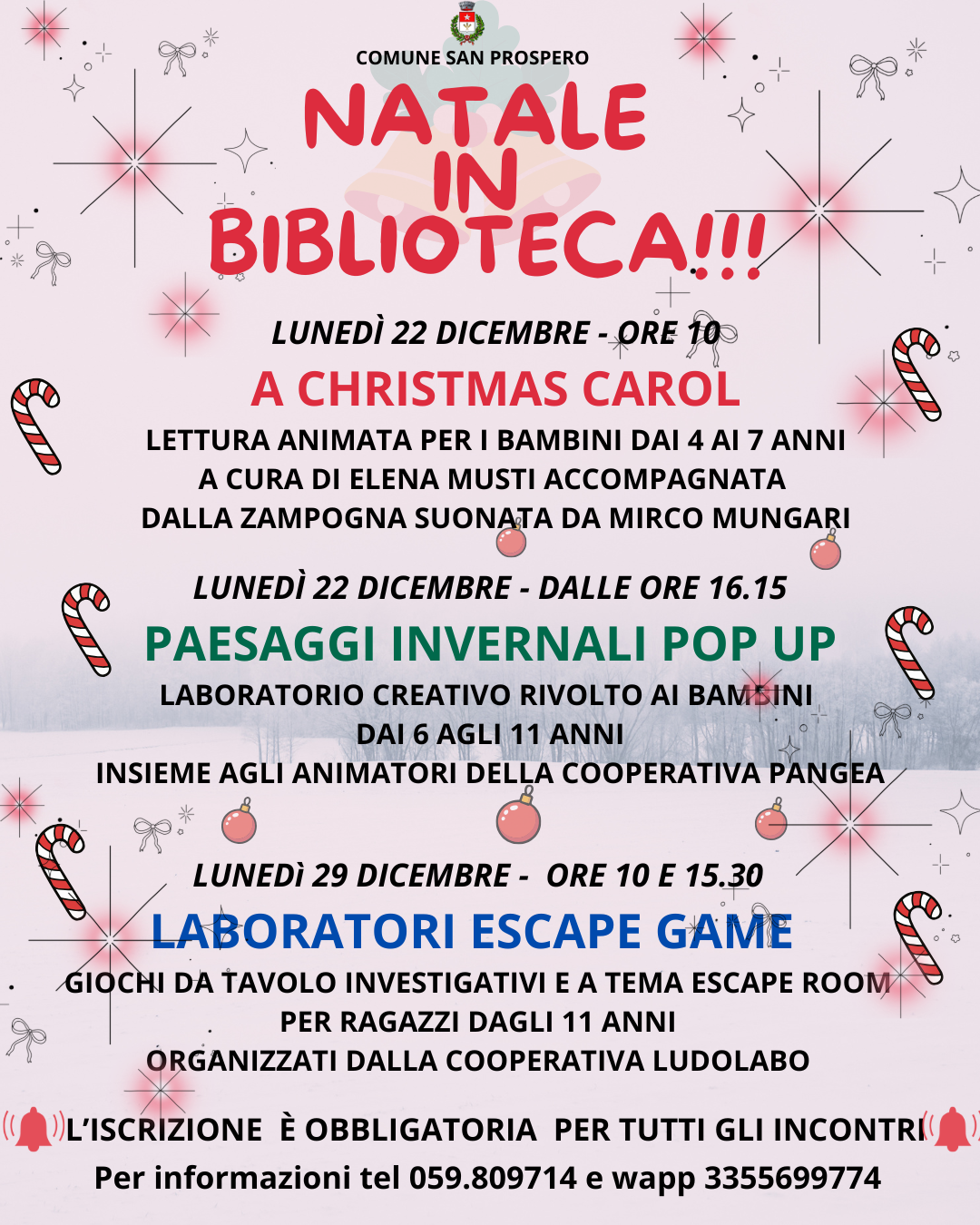 Nel periodo natalizio la Biblioteca Comunale aspetta bambine, bambini, ragazze e ragazzi con varie attività di lettura e gioco ...