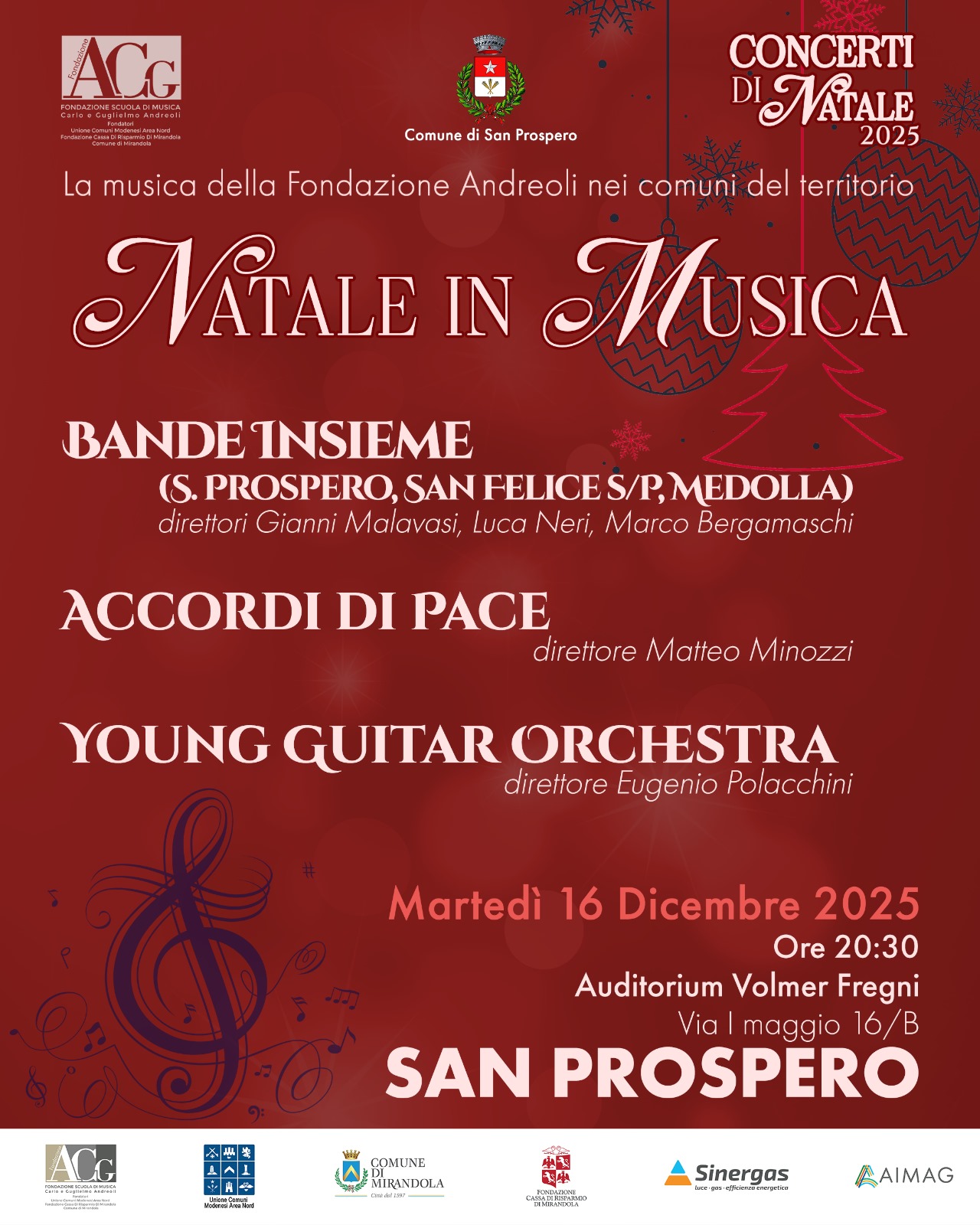 L’ Amministrazione Comunale e la Scuola di Musica Fondazione Andreoli invitano tutta la cittadinanza al tradizionale Concerto di Natale